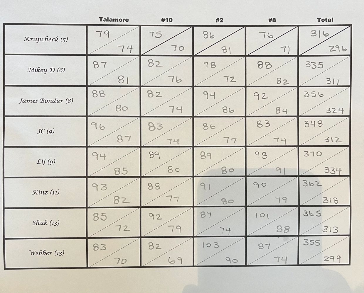 Congratulations to Krapcheck who kept his shit together for four rounds of golf!